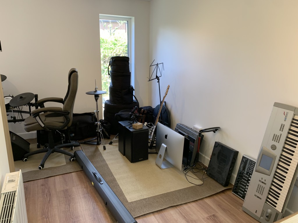 Early in 2019 we moved to a different part of Milton Keynes. Here, I set up my gear in the dining room of the new house, sharing my music making and listening apparatus with dining table and chairs, book shelves and at one stage a running machine (don’t ask why!).